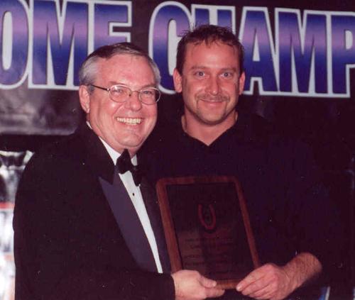 Division Director Jay Hullinger (left) presents Joe Cheeseman the Pro-Sportsman Mechanic of the Year award.