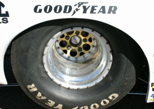 Prior to the beadlock rule, tires were secured using sheet metal screws that went through the rim, into the bead of the tire. This example, on one of David Nickens' Neons, used 20 screws.