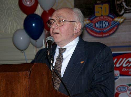 Bob Kaiser spoke to the audience at the 2003 NHRA Northeast Division awards banquet moments