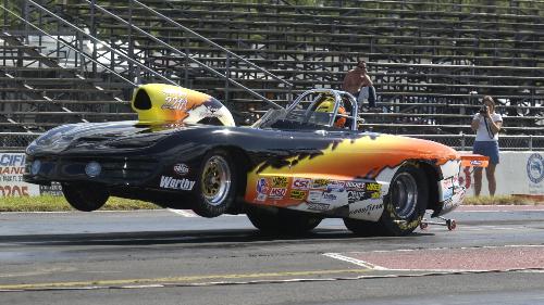 Sean Weatherwax launches with the wheels in the air in his Corvette.