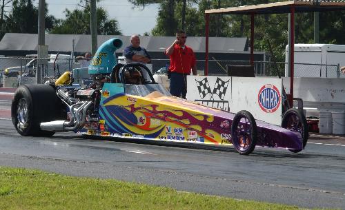 Bob Fuller launches in his beautiful dragster during the Moroso 5-Day Bracket Championships.