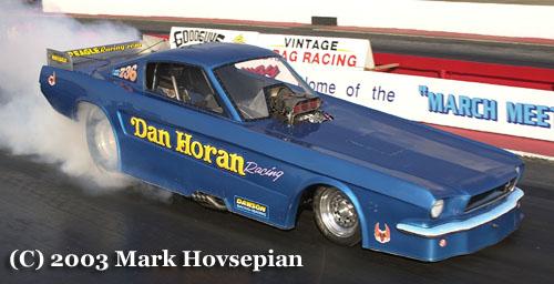 Dan Horan Jr. rocketed to a stunning 6.17 in his Dale Pulde-tuned Mustang Funny Car during Saturday's exhibition session.
