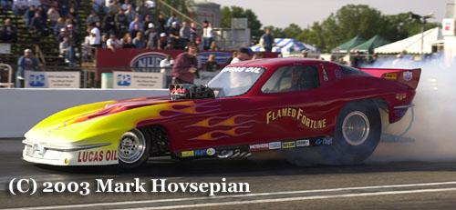 Bob Godfrey made one pass in the Godfrey & Close "Flamed Fortune" funny car, which netted a mid six-second run.