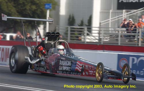 English invader David Wilson brought his Top Alcohol Dragster over from London and qualified on the bump with a 5.479 at 248.34 mph.