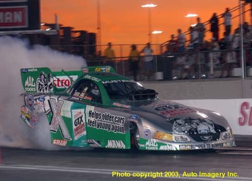 John Force ran a 4.797 at 319.60 on this twilight qualifying pass Saturday to put him in the number four spot.
