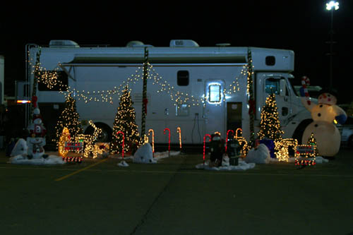 Winners of the Clark Griswold Trophy for best Christmas-decorated pit area: the combined pit area of the Myhre and Propp families of Sacramento, Calif.