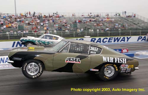 Dave Raybourn (far lane) defeated Charlie Westcott in the semis of the Hemi Challenge, 8.841 to 8.897.
