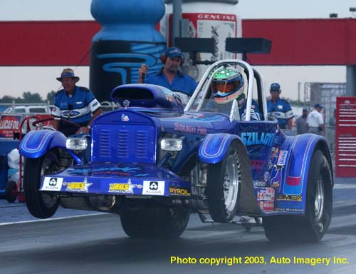 Jeff Szilagyi launches on a Super Gas time trial run.