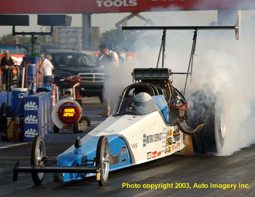 action with a 5.467 at 262.69 mph, but a mishap turning off the track tore