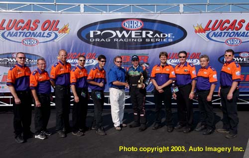 Scott Palmer's O'Reilly Auto Parts Top Fuel team earned Best Appearing Crew honors at the Lucas Oil Nationals.