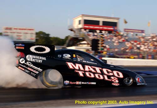 Whit Bazemore qualified 3rd with a 4.952 and was hoping to gain some more ground on Tony Pedregon this weekend, but he hazed the tires and dropped a second round match with Frank Pedregon.