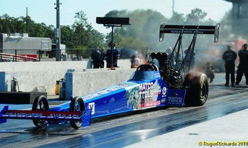 Antron Brown reported on Facebook his first full pass of the week was 3.86 seconds at 314 mph, and second full pas was better yet a 3.85 seconds pass at 319 mph.