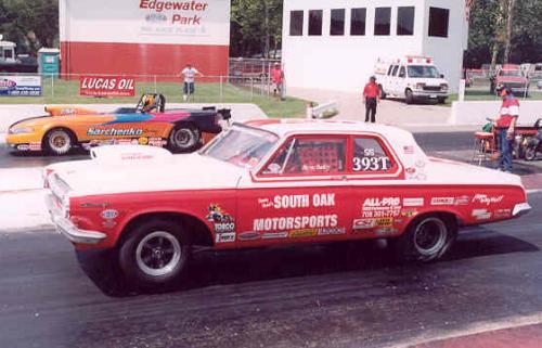 Steven Bailey in his '63 Dodge (near lane) vs George Sarchenko '03 Mustang Roadster.
