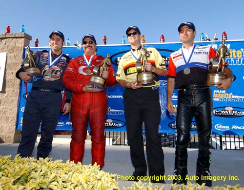 Larry Dixon, Gary Scelzi, Jeg Coughlin Jr. and Geno Scali were the big winners at the Fram Autolite Nationals.