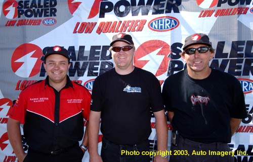 Three of the five sportsman low qualifiers showed for the photo ceremony. Pictured (from L to R) are Alan Bradshaw (TAD), Dean Carter (Comp) and Steve Wann (Stock).