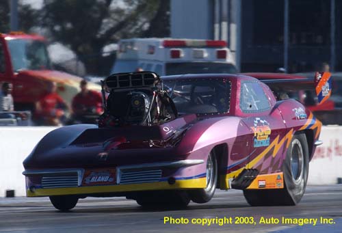 Ron Muenks' Outlaw Pro Mod (with screw blower and Lenco-drive) stunned the Pro Mod field with a great 6.09 at 234 in the first qualifying session.
