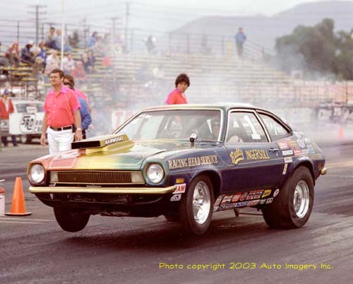 Buddy Ingersoll is best known for his turbocharged BB/AT Buicks, but he won the Modified Eliminator championship in 1977 in this turbocharged four cylinder Ford Pinto AA/Modified Compact.
