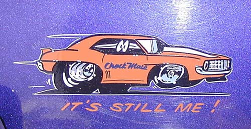 orange Camaro still lives in this graphic on the back of the car.