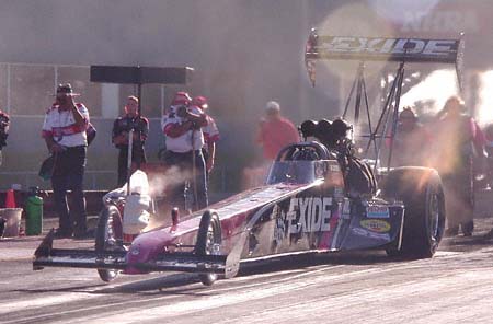 Tony Schumacher just missed the top spot Friday night with a nice 4.557 at an event record 326.91 mph.