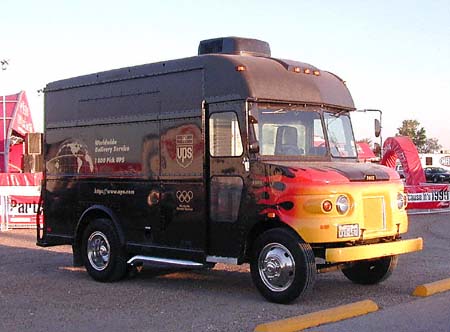 This flamed UPS package car was seen in the pits at the Motorplex. Sure doesn't look like the UPS truck that delivers to our door.