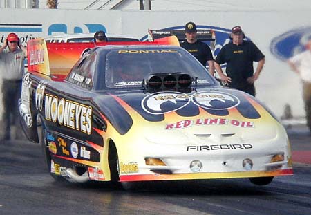 Al Hofmann makes his first short pass at the wheel of Jim Dunn's Mooneyes Funny Car.
