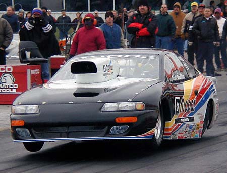 After missing most of last season, Scott Geoffrion returned to the seat of his Dodge Avenger and showed very little signs of rust. He ran as quick as 6.92 and made it to the semis after defeating teammate Darrell Alderman in the 2nd round.