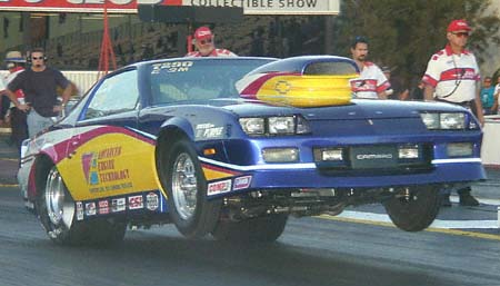 Larry Hedlund put his E/SM Camaro into the 3rd spot in 2nd round Comp qualifying with a 8.447 on a 9.09 index.