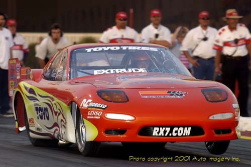 Abel Ibarra made several exhibition passes in his 7 second Mazda RX-7 to help promote the Summit Import Series.
