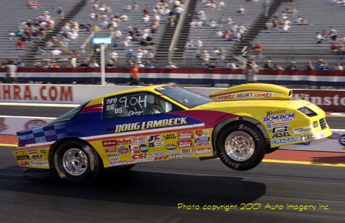 Doug Lambeck qualified 10th in Super Stock with a 9.048 on a 10.00 index and defeated Don Thomas in the first round before losing to Ross Wilson in the second round.