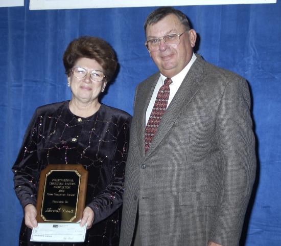 Jim Hartley presents Sherrill Dimit the International Christian Racers Association Good Samaritan award.