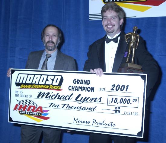 Moroso Grand Champion Michael Lyons (right) is presented $10,000 check from Moroso Senior Director of Marketing and Sales Dave Melillo.
