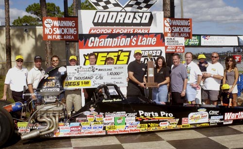 Britt Cummings Wed, 27 Nov 2002, 07:29 AM Britt Cummings celebrates win at Jeg's Moroso 5-Day Bracket Championship Day 4. He