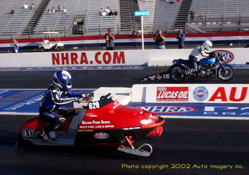 Rich Pedraza drove his snowmobile to the Super Pro Bike title by defeating John Snyder in the final.