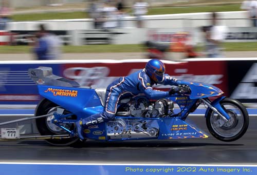 Ron Webb's "Fire and Ice" Top Fuel Bike made several passes in the 6.40's at over 200 mph.