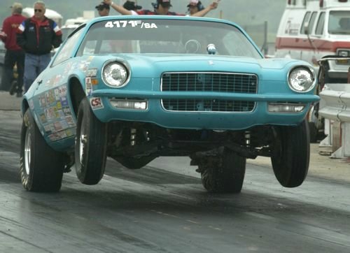 Greg Hill joins in the unusual number of wheelstands in the Stock Eliminator ranks at Shreveport in his F/SA '71 Camaro.
