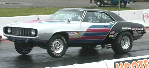 Bob Sharp gets some air time at Shreveport in his '69 Camaro Top Stock entry.