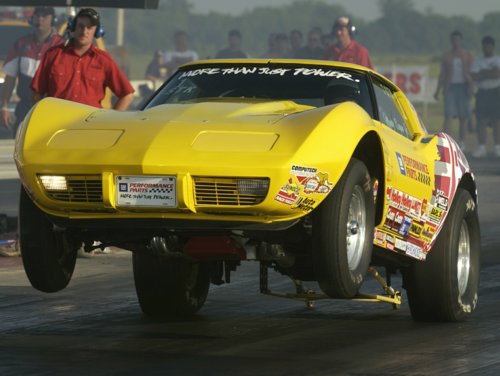 Monty Bogan gets some air time in his '74 Corvette Top Stock entry. He also made it to the finals at Shreveport, but lost to Mike Adams.