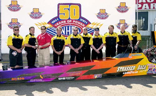 David Baca accepts the Best Appearing Crew trophy for the Baca & Strasser Federal Mogul Dragster team.