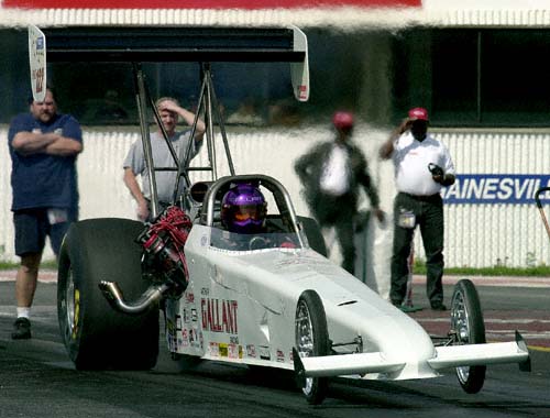 Art Gallant qualified 4th in Federal Mogul Dragster with a 5.458 at only 245 mph.
