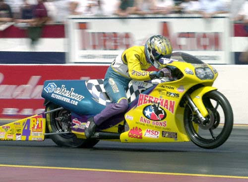 Antron Brown grabbed the top spot in Pro Stock Bike with 7.208 in the last session to ace out Matt Hines by .006 seconds.