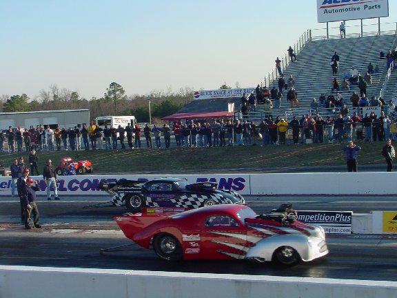 Alan Pittman left an apparently disabled Steve Cossis sitting at the starting line in the CompetitionPlus.com Spring Open Pro Modified final round.
