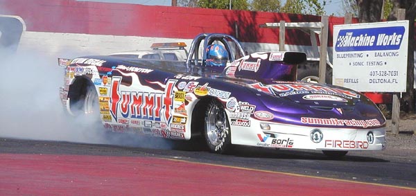 Mark Horton was fine tuning his new topless Summit Racing Firebird.
