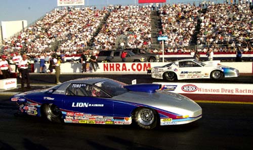 The man who has seemed to own Comp at Pomona the last few years, Andy Manna (far lane), redlighted in the final giving Jeff Lion the first national event trophy of his career.