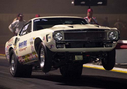 Tony Hewes wheeled the Mendes Bros. Mustang to the 10th qualifying position in Super Stock with a 9.845 on the 10.85 index.
