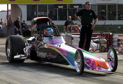John Garner was testing his brand new Ford powered Super Comp dragster. Looks like a contender for Best Appearing Car to us!