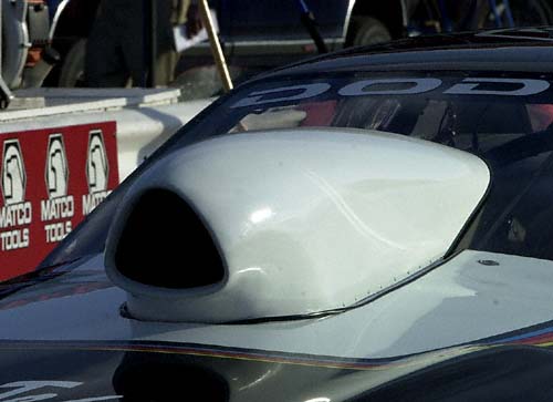 The unusual looking scoop on Darrell Alderman's Dodge is supposedly worth .25 miles per hour.