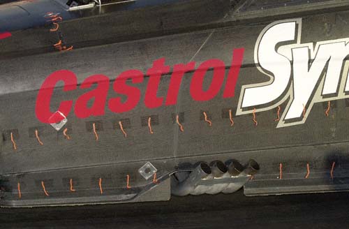 Tim Gibson, newly-hired Force Racing aerodynamics expert, had pieces of string taped all over this body in the never ending quest for more downforce with less drag.