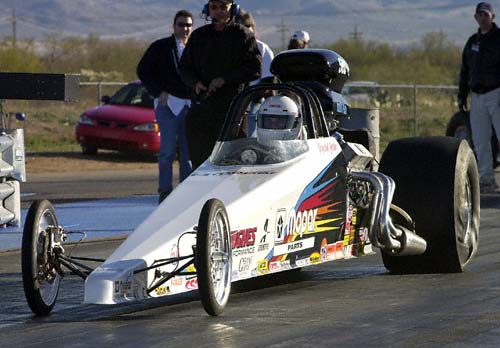 Sheldon Gecker's wife Crystal was out testing her Super Comp dragster.