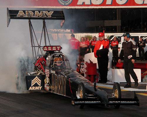 Tony Schumacher rebounded nicely from his Memphis crash by qualifying in the number two slot with a 4.571 second clocking at 320 mph.