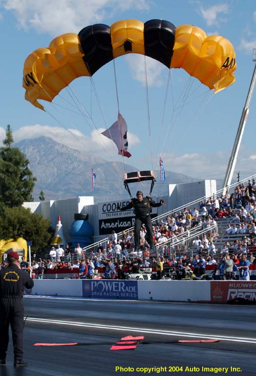 The Army's Golden Knights parachute team performed during pre-race festivities.
